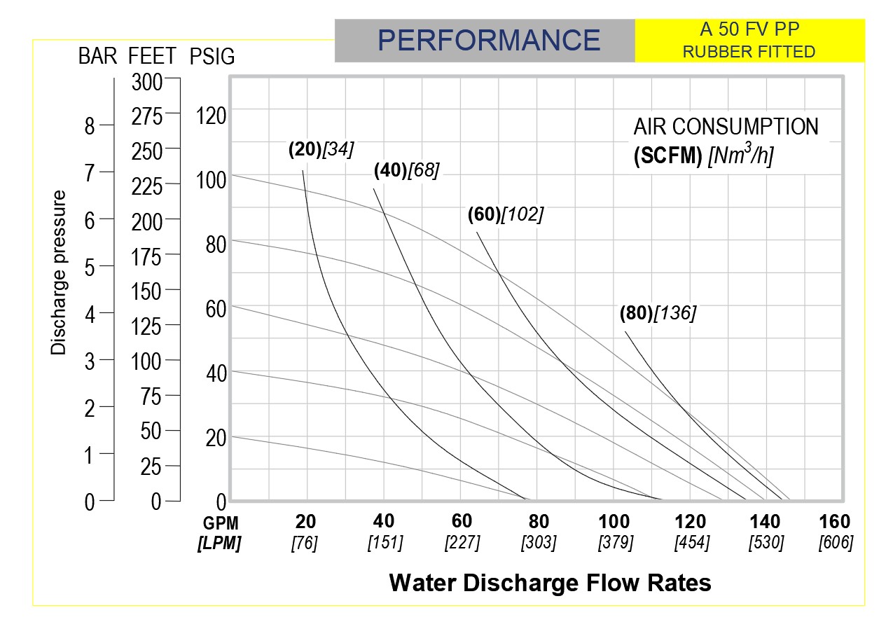 Note: Full Stroke diaphragm allows performance to be equal for all elastormers.