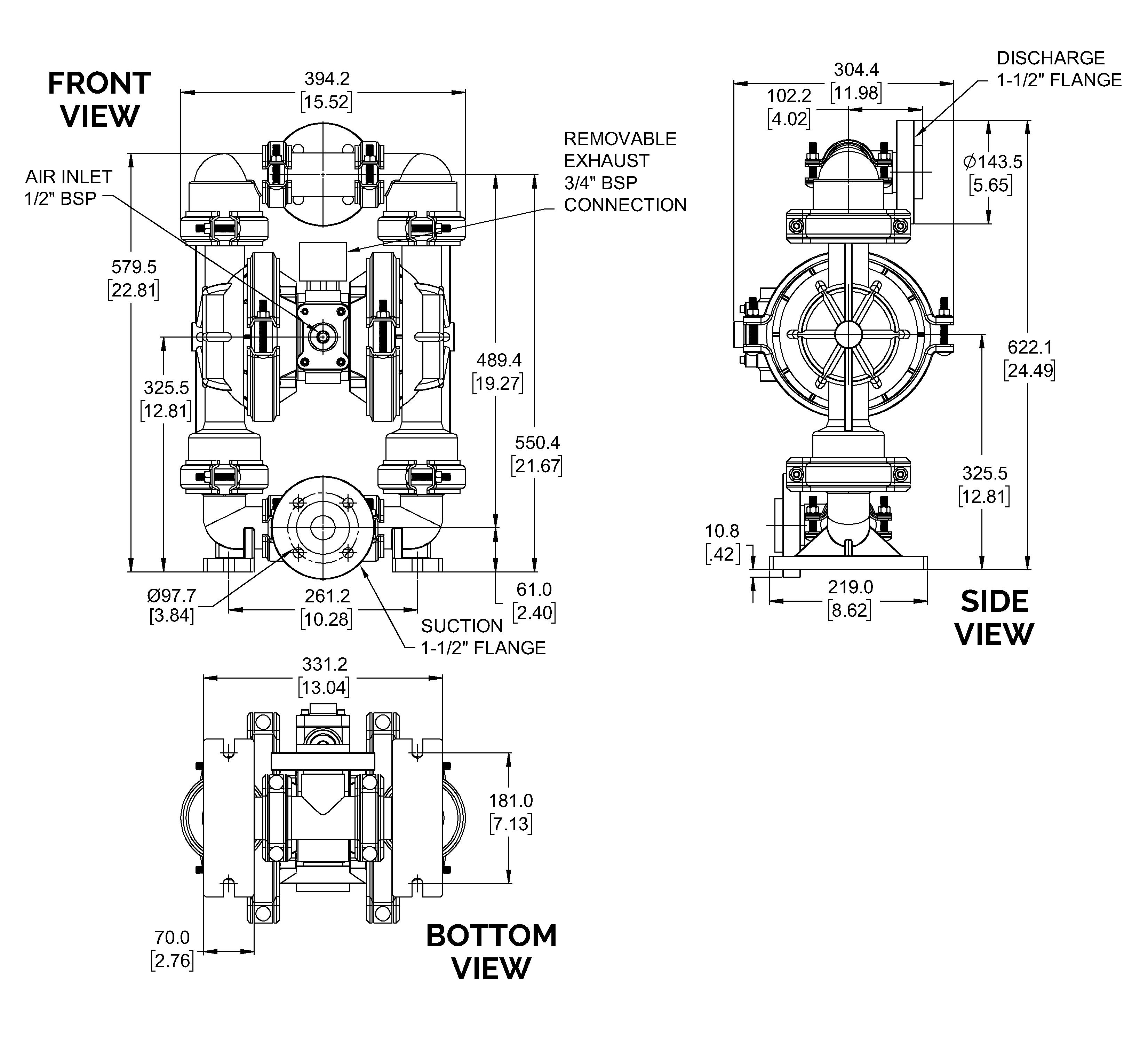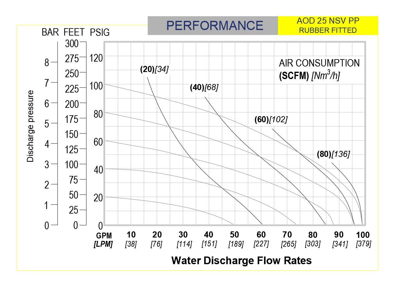 Note: Full Stroke diaphragm allows performance to be equal for all elastormers.