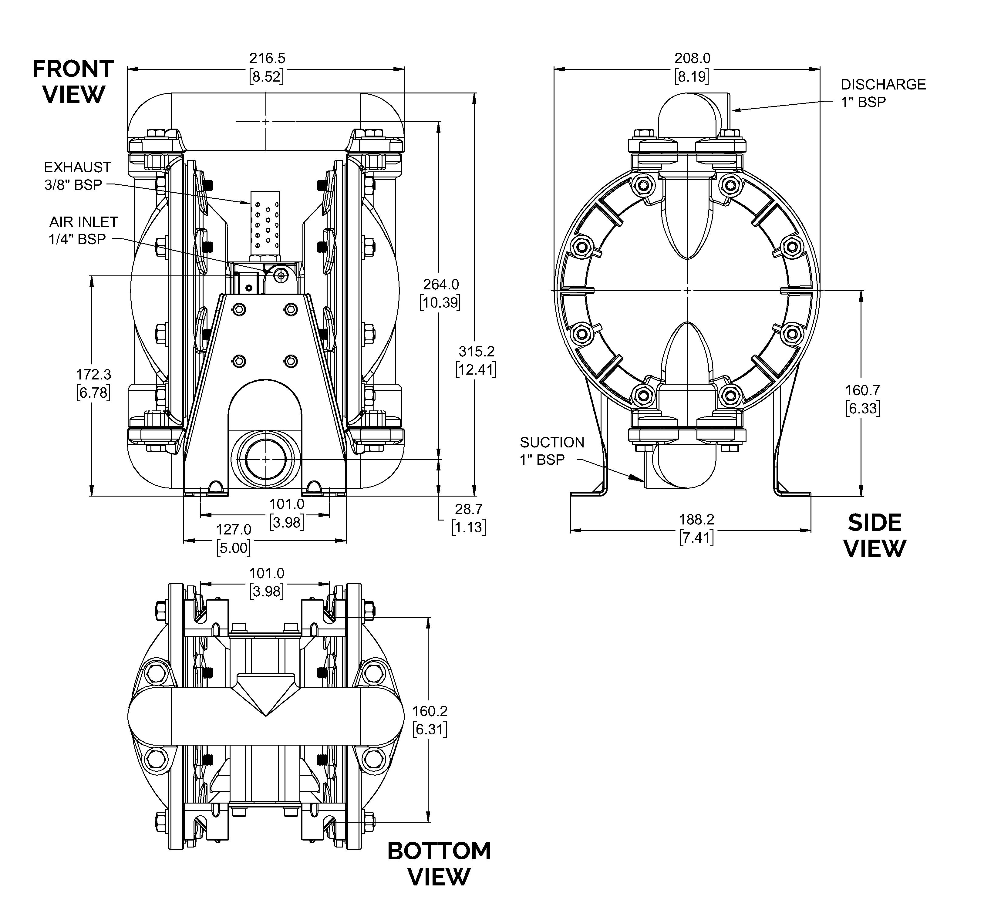 Note: Full Stroke diaphragm allows performance to be equal for all elastormers.