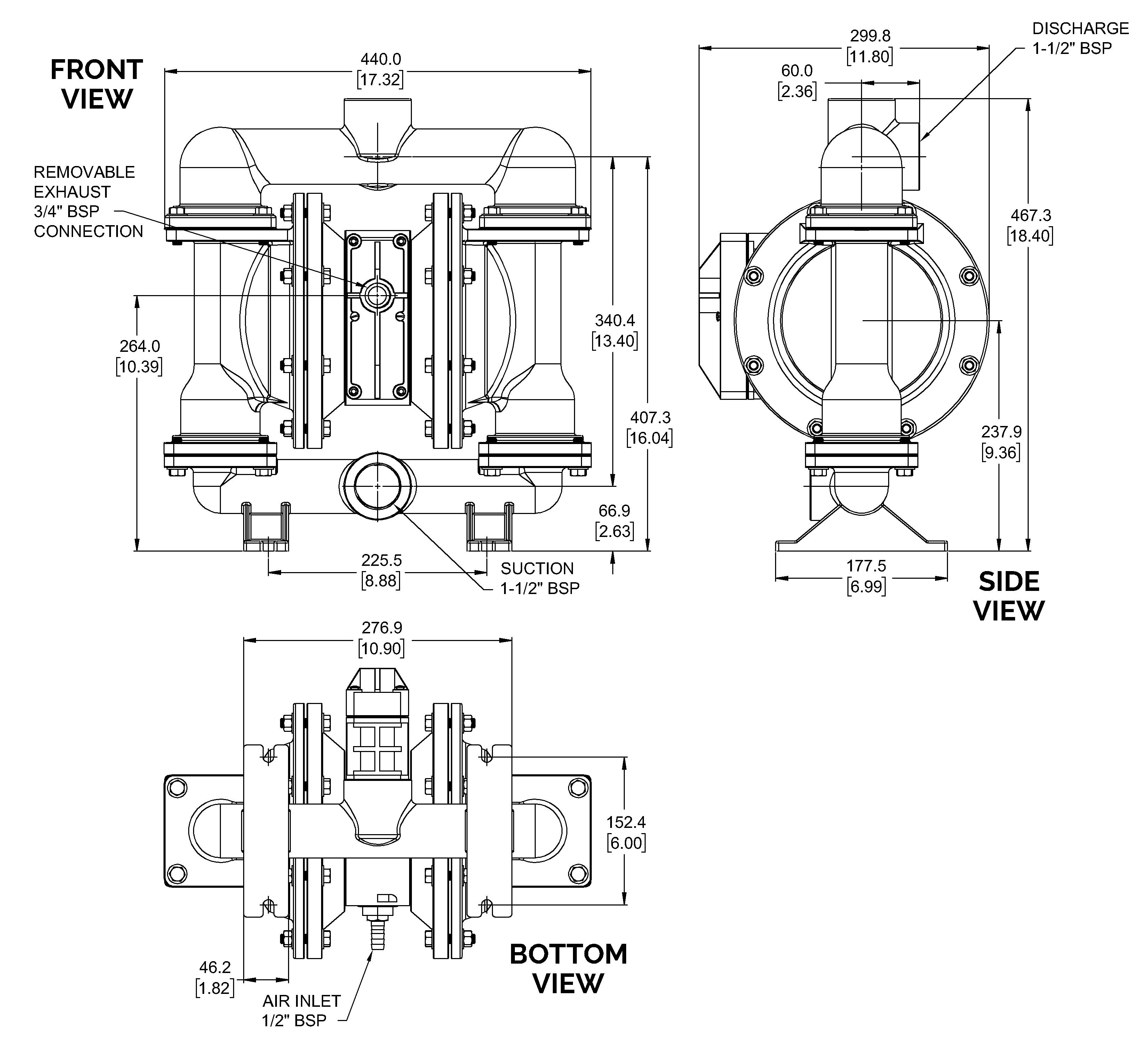 Note: Full Stroke diaphragm allows performance to be equal for all elastormers.
