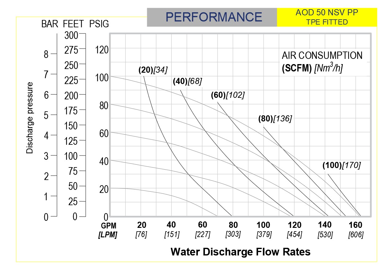 Note: Full Stroke diaphragm allows performance to be equal for all elastormers.
