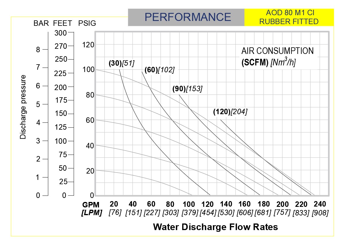 Note: Full Stroke diaphragm allows performance to be equal for all elastormers.