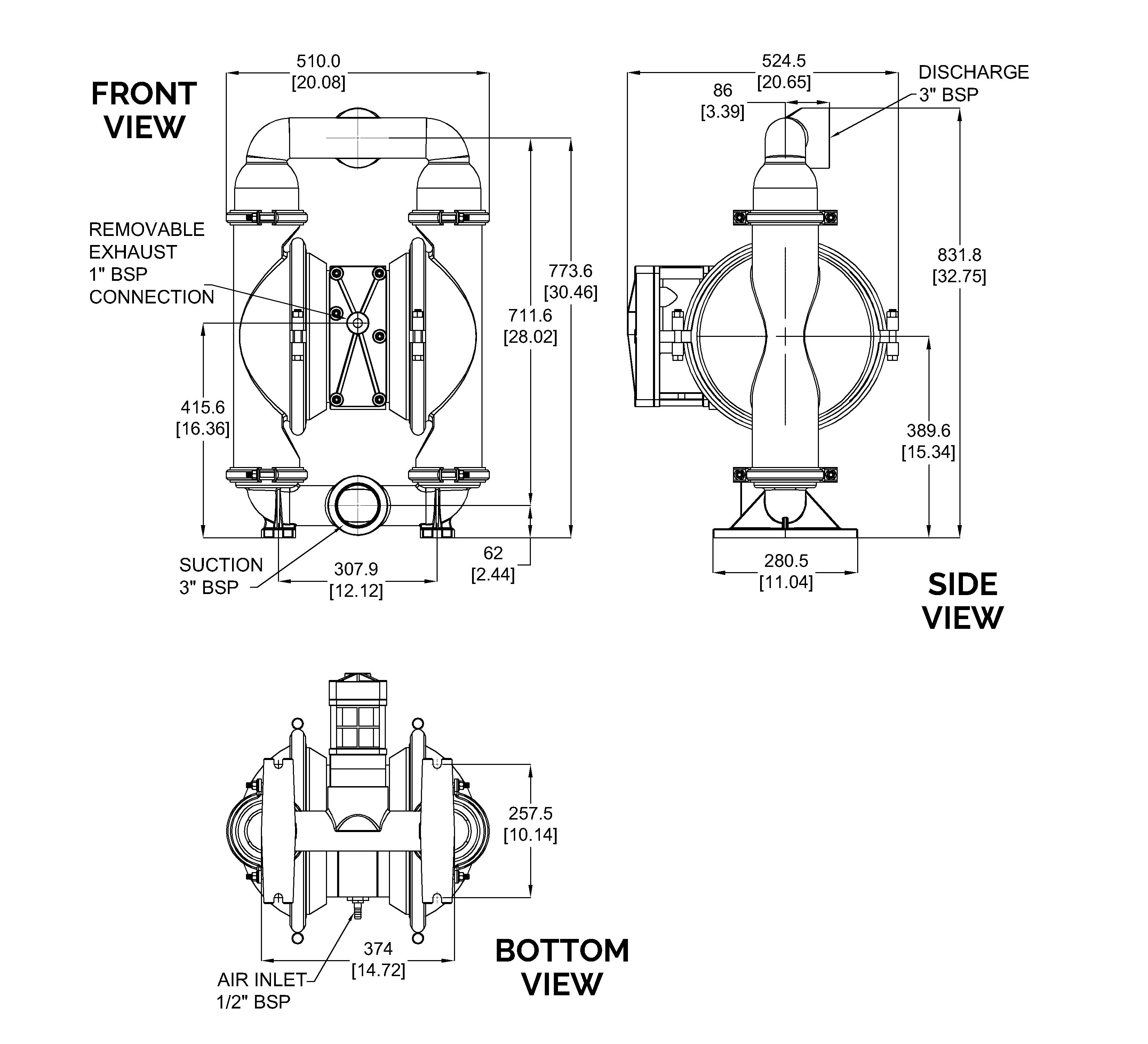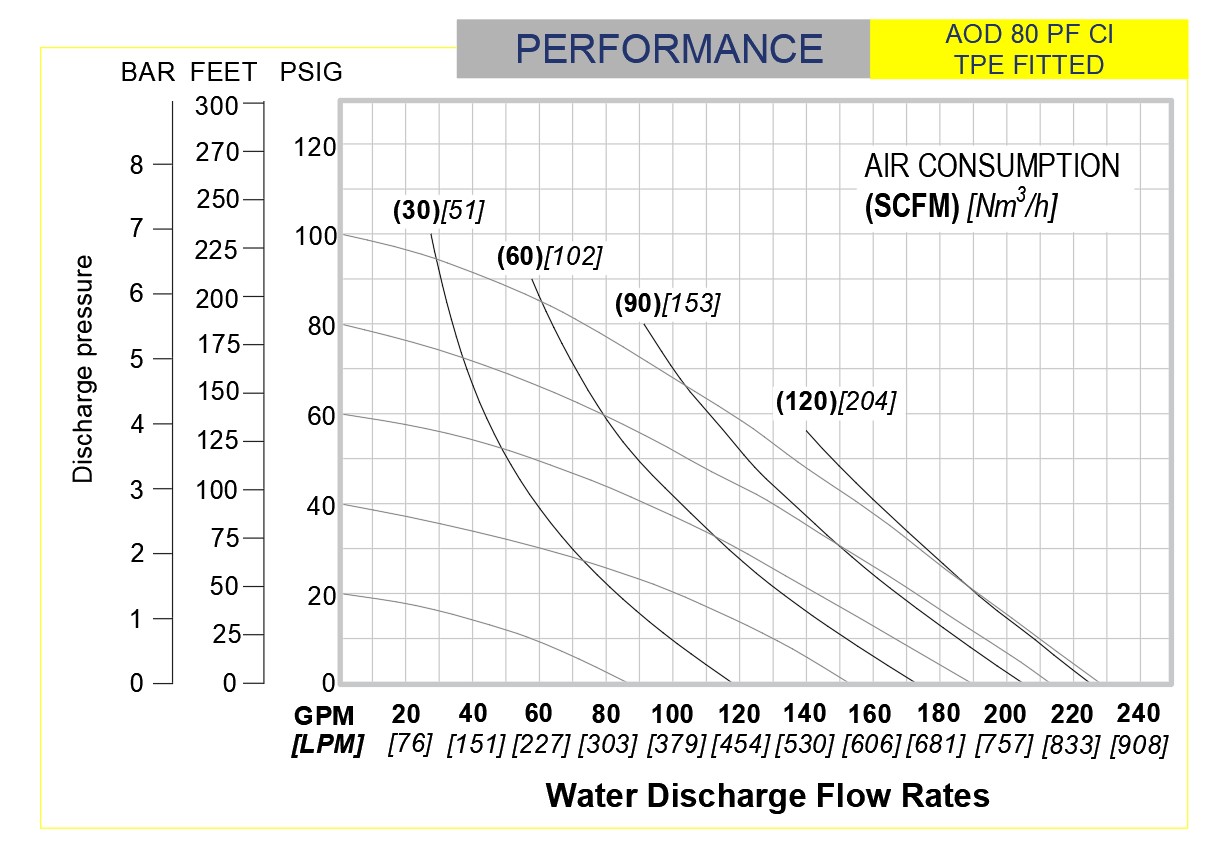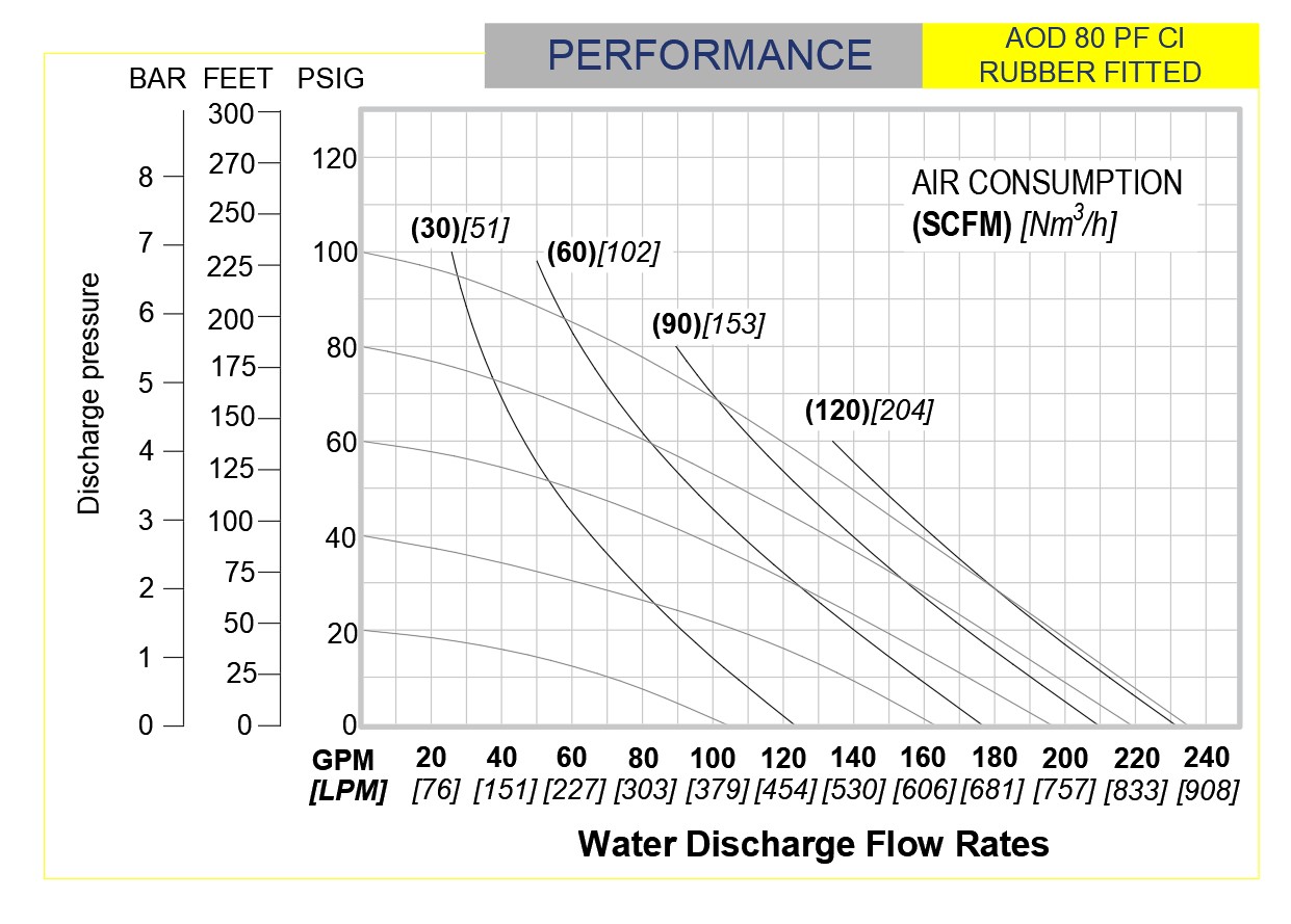 Note: Full Stroke diaphragm allows performance to be equal for all elastormers.