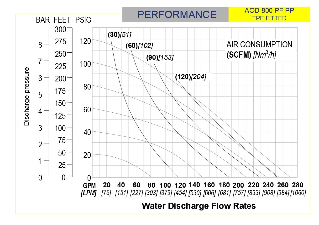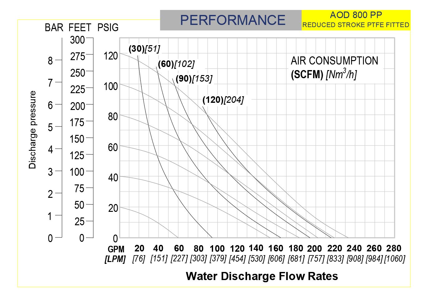 Note: Full Stroke diaphragm allows performance to be equal for all elastormers.