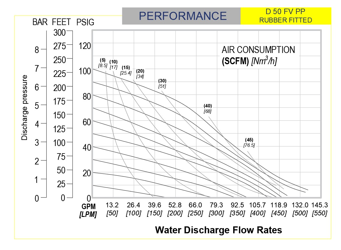 Note: Full Stroke diaphragm allows performance to be equal for all elastormers.